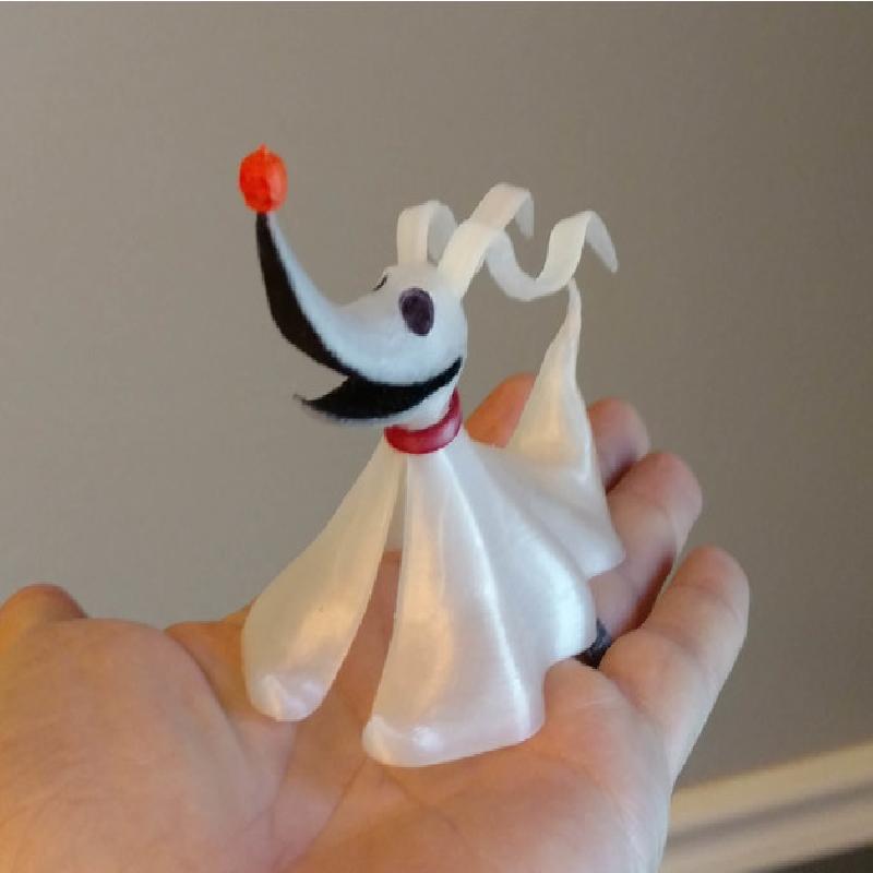 Jack Skellington's dog Zero. A lovable scamp and a quick print... about 3 hours. I've used a "natural" filament for the print, just to give it a semi-translucent look.
