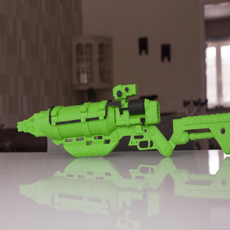 A laser rifle modeled after the asset from Fallout 4. All parts are scratch made with an exported model as reference.