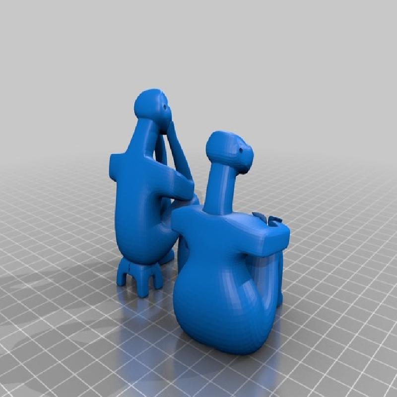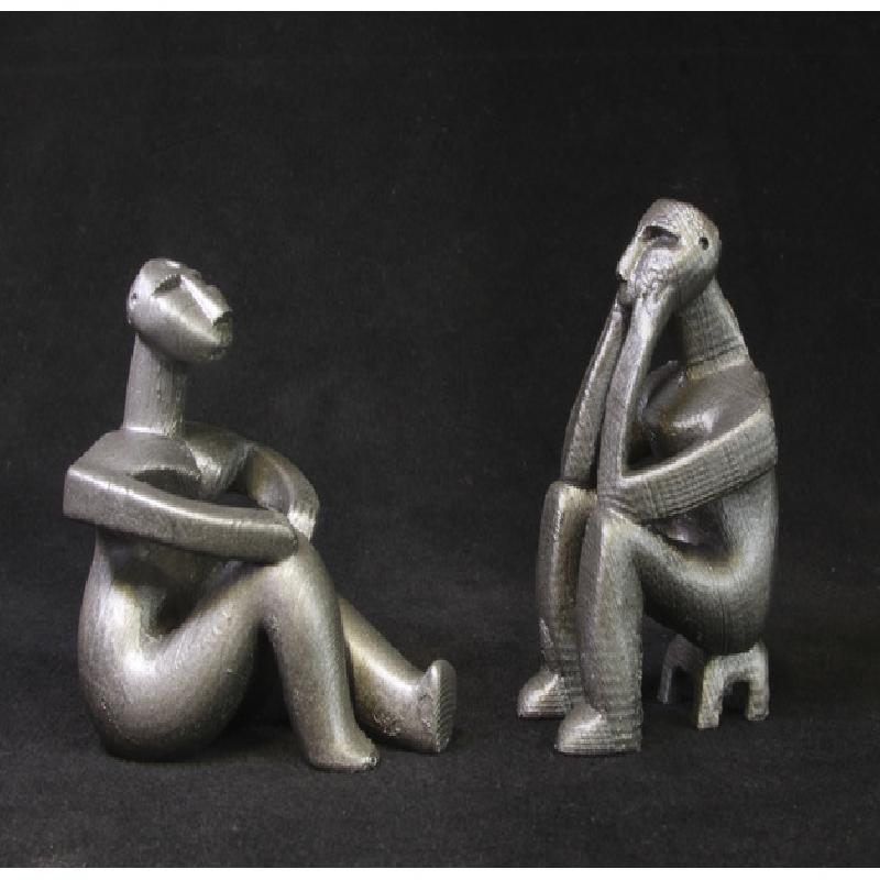 I made two versions of each figure. I found they print best flat on their backs. However, if you want round backs you can print them in the default orientation. When they print on their backs, the arms and face have better surface quality, because I'm printing with a single extruder. Turn support material on. I set mine for about 28° overhang threshold. I used about 0.2mm layer height, and used textured spraypaint to fill in surface and smooth it out, but you can switch to a more fine resolution if you want.