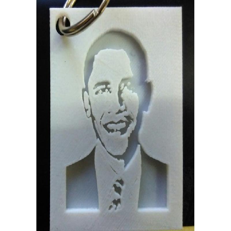 A portrait cum keychain of the former American president Barack Obama. Printed it in PLA white. Scaled it down to 75%. Took about an hour to print this.