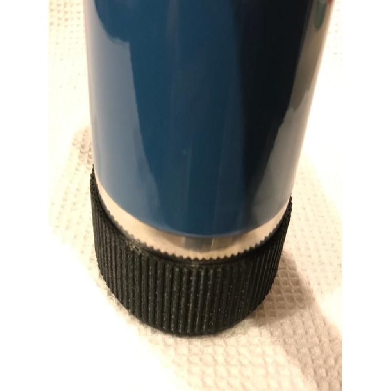 I mean, at first, I was worried that maybe it was going to be too tight (like, not be able to fit on the bottom), or too loose (and I'd need to use tape to get it to stay). Or perhaps I measured incorrectly, and there would be a little gap between the blue of the bottle, and the plastic bottom, where the silver bottom showed through. Nope. Nothing. PERFECT.
