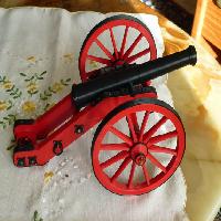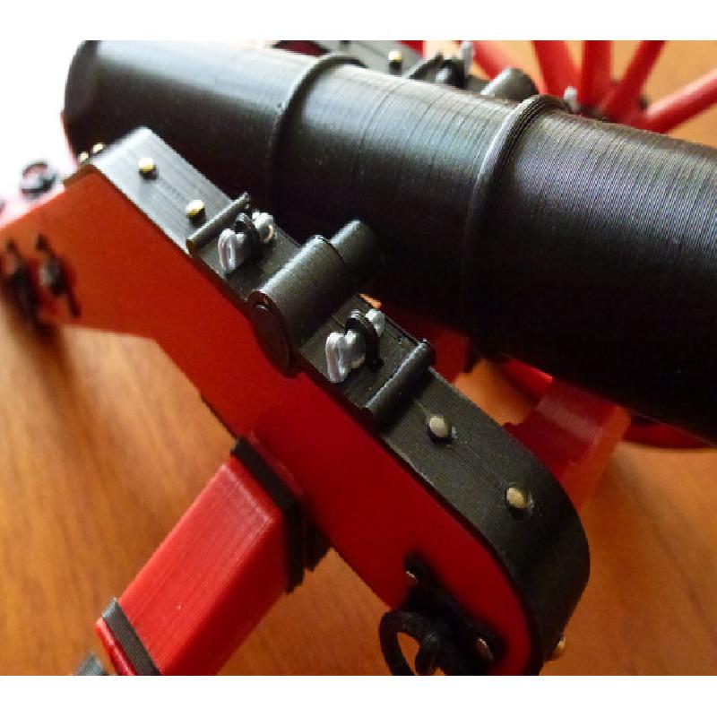 50 years ago I saw a cannon at the castle of Buedingen in Germany. After I took several photographs I build a model of it from steel and wood. To make it more decorative I designed the metal fittings a little ornate.