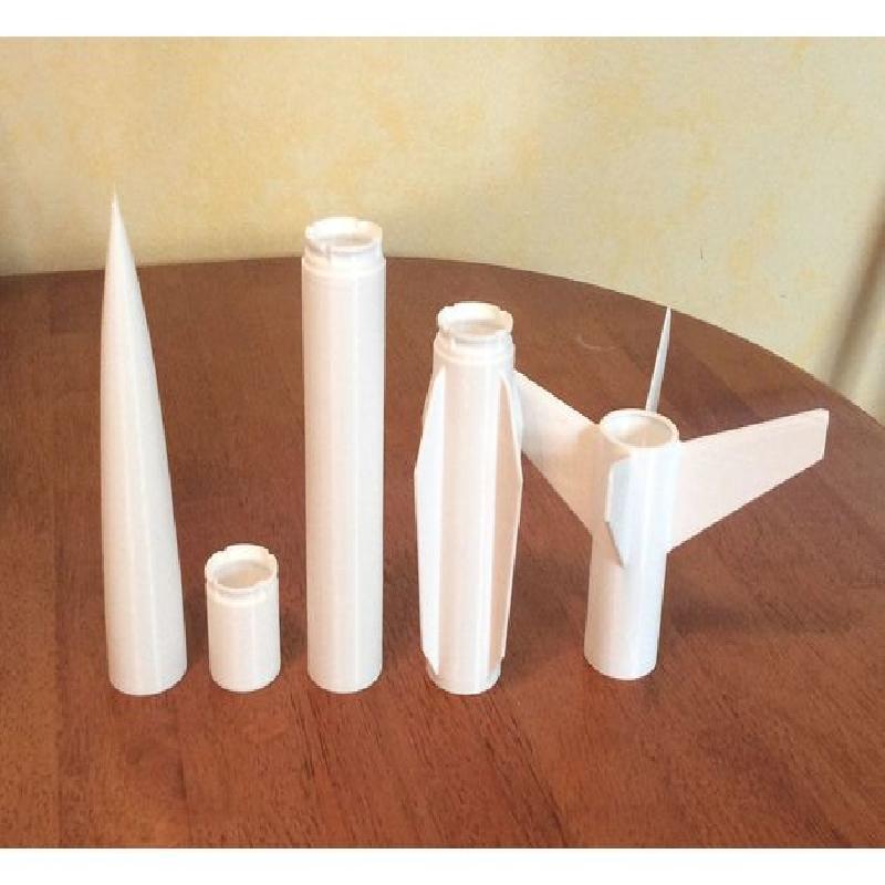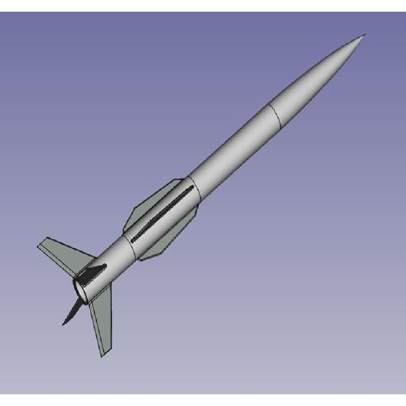 This is a replica of the Sentinel model rocket sold by Estes beginning roughly twenty years ago. It is one of my favorite rockets. I scaled it down by .8 so the fin section would fit within the 6" diameter build plate of my Orion Delta printer. The body wall is 1 mm thick, allowing for two extrusions of .5mm.