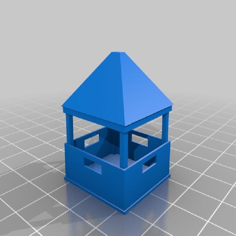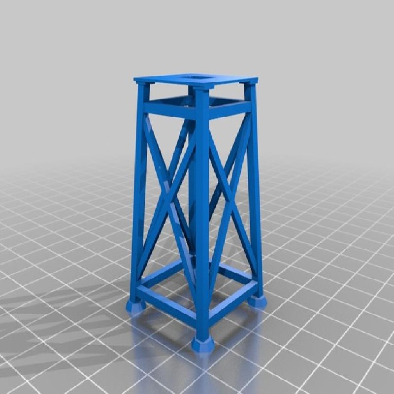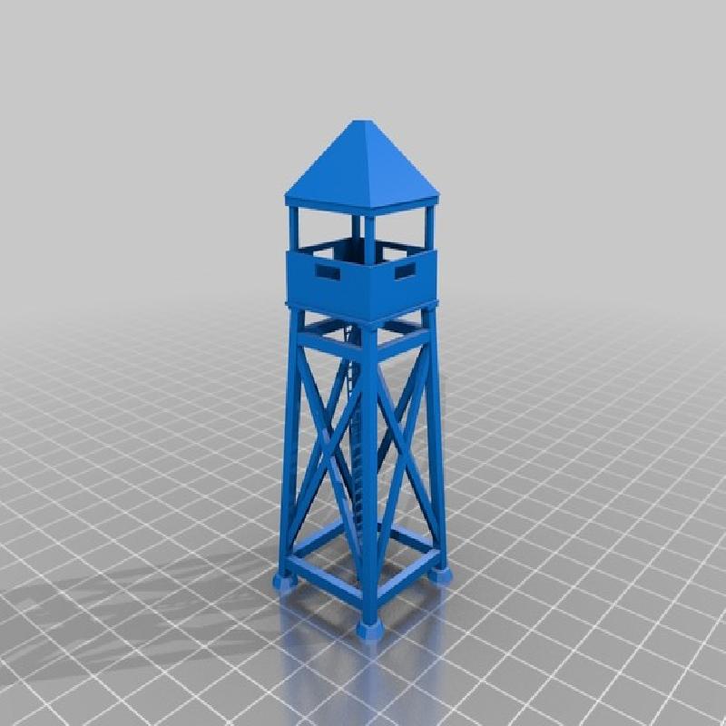 A wooden observation tower suitable for Flames of War. This is a Remix of a model that was called force-tower I have been unable to find the source for this so Av big Thank you to the original designer. I split the original model into components to facilitate an easier print.