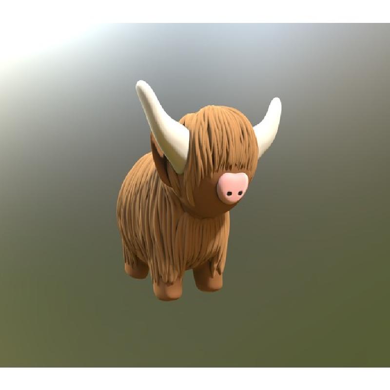 Pudgy little highland cow, modeled after a clay model by the talented Stuwaha as seen here: https://stuwaha.deviantart.com/gallery/664385/Wee-Moos