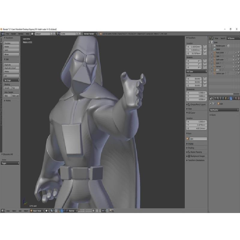 no light saber w/ this STL. i have the base for it but not the beam. edge creases vary between 0.4 - 1.0. his boots were NOT scaled to z=0. print w/ supports at your own risk.