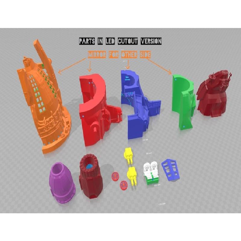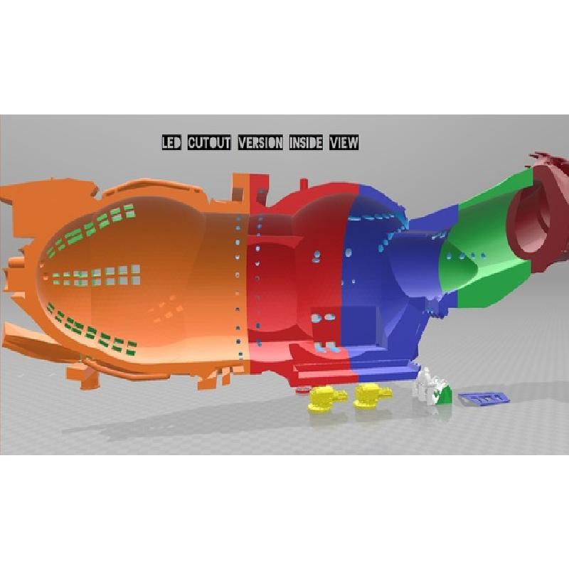• Waffen ergänzt (Vorne fest, Middle part sind 360 Grad drehbar, entweder nach dem Druck leicht ausdremeln (ca. 1/10mm) oder mit 102% drucken. Mit der Dremel Variante könnt Ihr euch selbst den Freiraum bestimmen, mit der gedruckten Variante kein Dremeln doch könnten die Waffen sich dann frei bewegen. Halten im schlimmsten Fall nicht mehr die Position.)