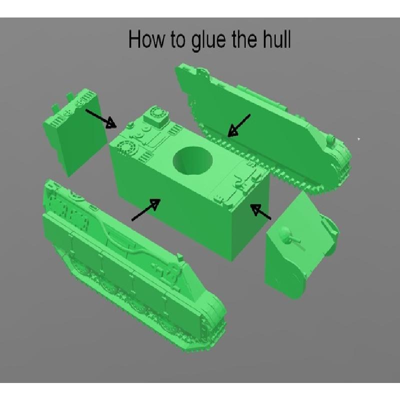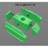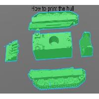 The 3 parts of the hull, front, middle and rear section were printed without support.
