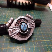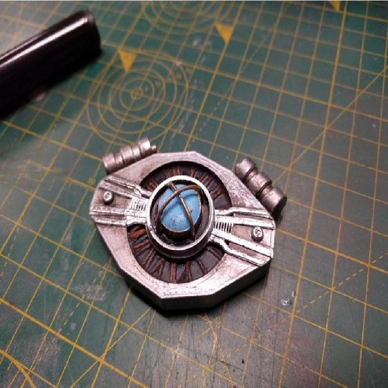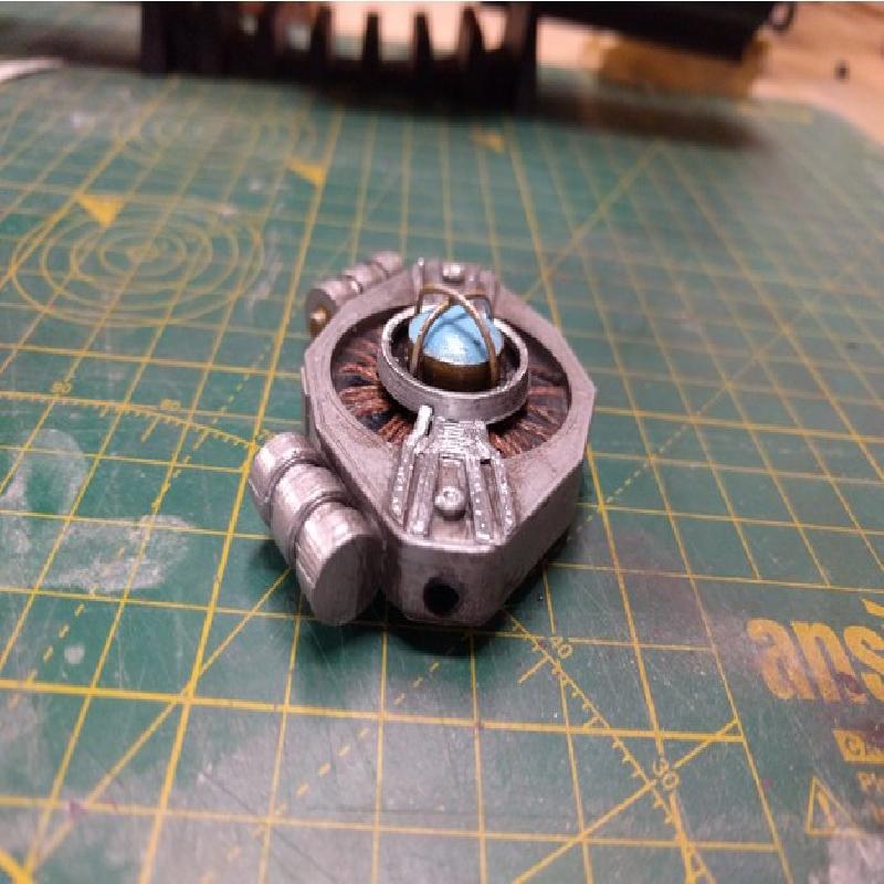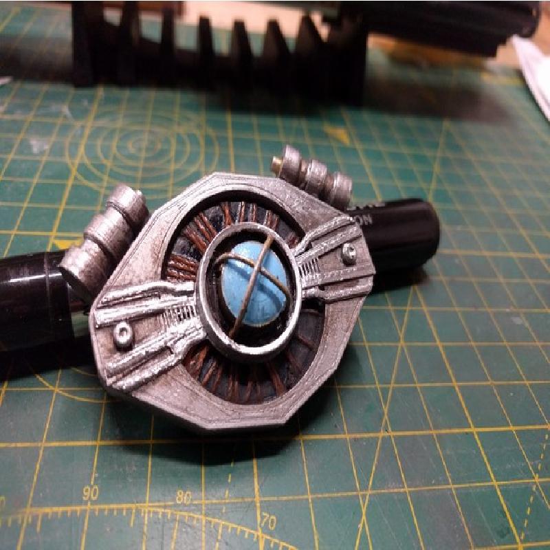 Bend Steel wire ( 1 mm thickness ) and insert into the holes around the middle blue thingy on the face