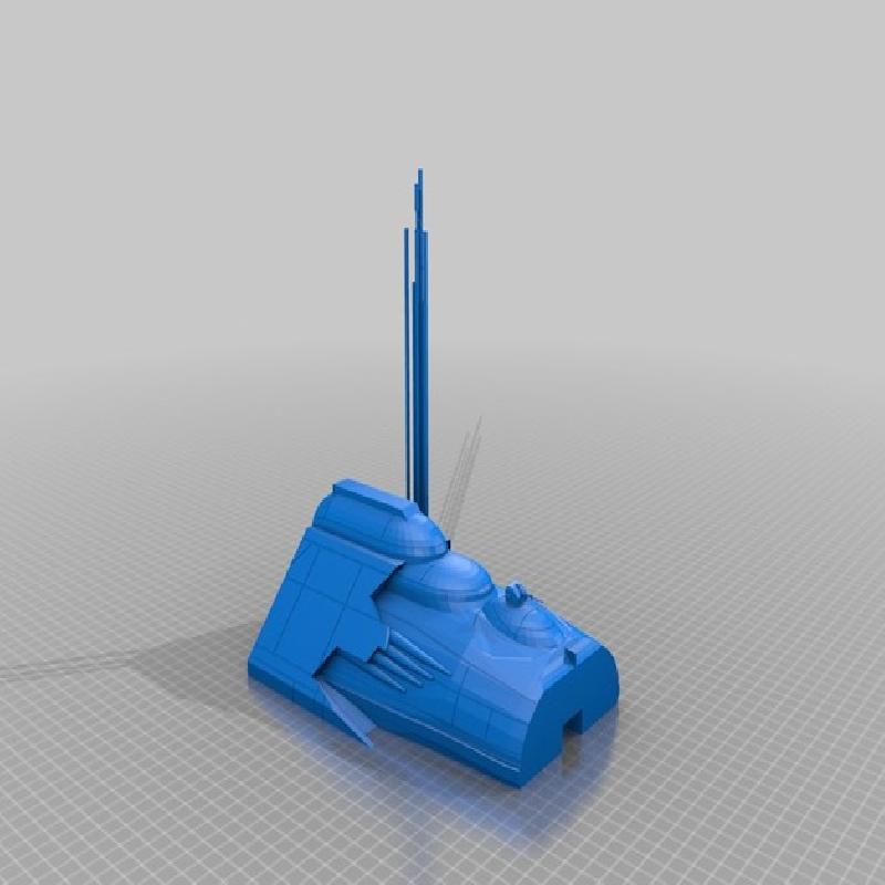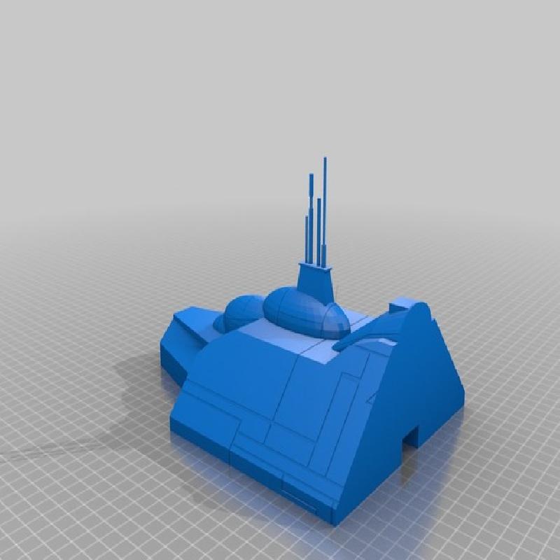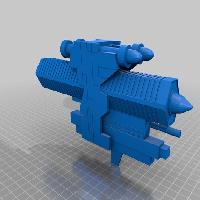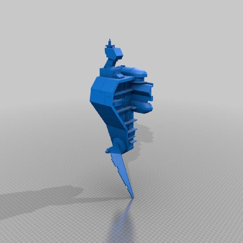 This is a model from the author Daniel at Sketchfab, I have taken the model and scaled it up to be around 1:270 similar to the X-Wing game (It is approximately 1.111 meters once assembled). The pieces are cut into smaller sections held together with pegs and squares inserted. Though the pieces are cut up they are still quite large.
