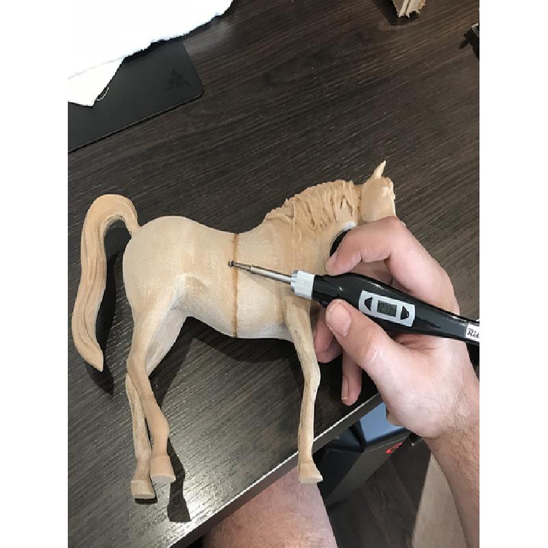 I printed the horse with wood filament, sanded it and coated it with Minwax satin. I also fine sanded the hair to highlight it after the paint was dry.
