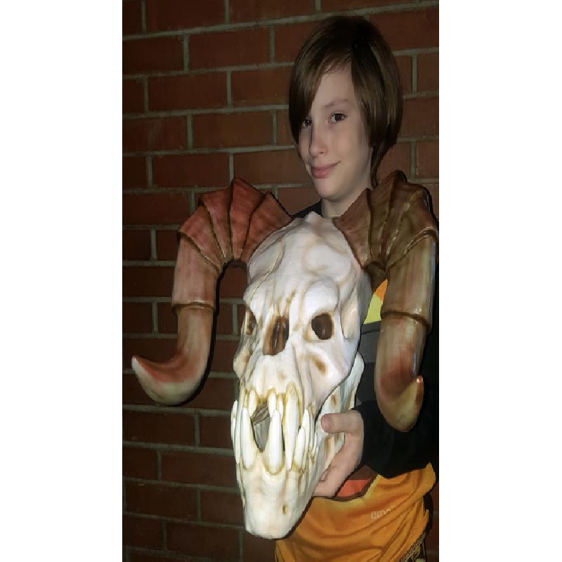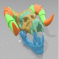 I liked this model a lot, so I used Cyanhyena's high res model and scaled it up to 150%. I should have gone 200% but I can print it again. I cut it up and hollowed it out to reduce the material needed. The intent was to have a wall thickness of 2-3mm and therefore hollow. I welded the pieces together, coated in Smooth-Cast 321 and painted. The upper skull weighed in at about 750g and the jaw was about 400g.