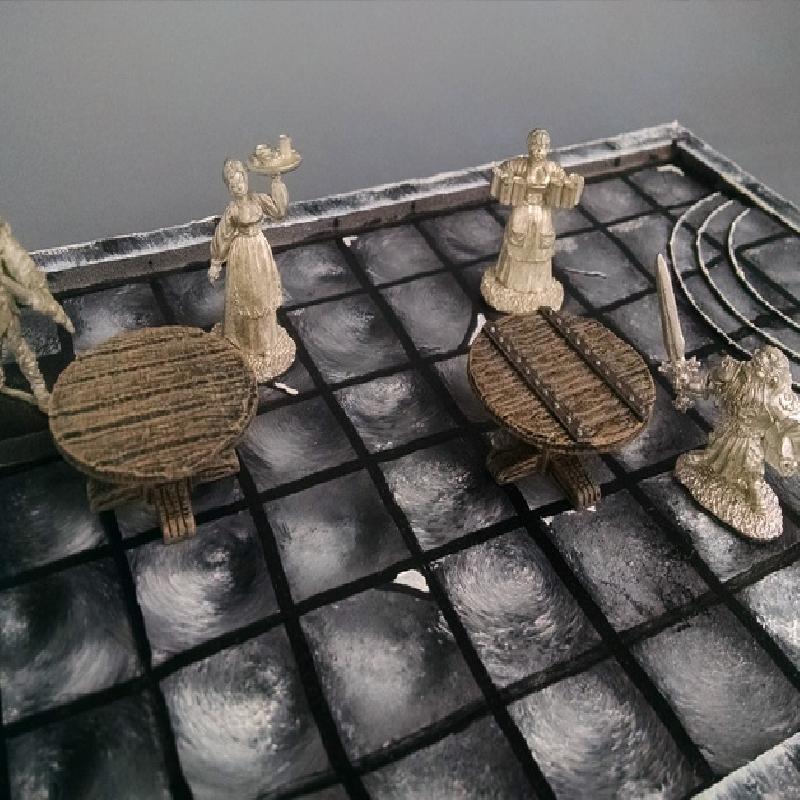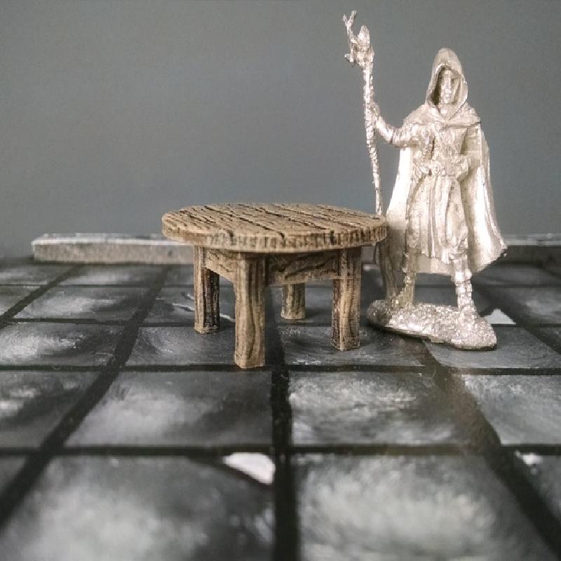 The table tops measure 1.5 inches in diameter but should be able to be scaled to suit you gaming needs.