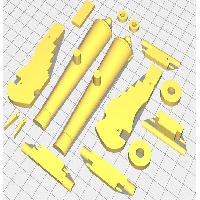 1800 ship cannon. The model is about 1/30 scale, modeled from a picture of the canon from the Danish frigate "Jylland". The last wooden ship built for the danish navy. The board and wedge where used to tilt the cannon barrel. I included these, but they are not needed for the print. There is also an assembled model Cannon.stl if you want to print it in one piece, but then the barrel and wheels will be fixed.