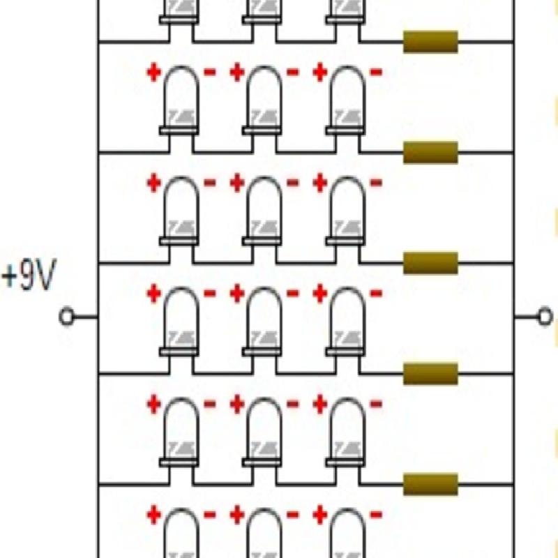 Wiring of the LEDs will depend on your particular LEDs and the power source you use. I am running off a 9v battery and have eight parallel rungs of 3 LEDs in series with a 68 Ohm resistor. My LEDs are a little under-powered and could be brighter with smaller resistors or if they were wired two in series instead of three, but they are bright enough. You can use this calculator to design your own circuit: http://led.linear1.org/led.wiz