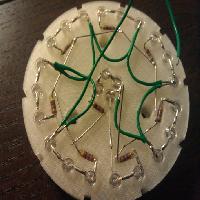 Put white LEDs in holes that are not covered from above by the top piece (10 around the outside and four in the middle), optionally put blue LEDs in the other holes to give a nice bluish glow to the outer ring. I sanded the LEDs before wiring them in to give them a more diffused glow.