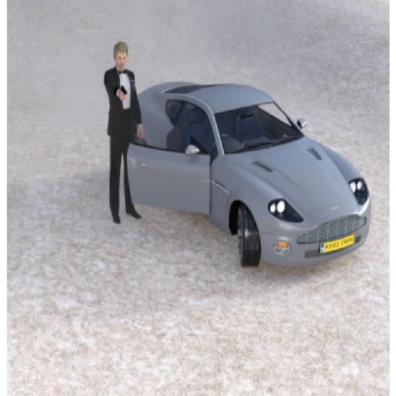 The bundle includes 3 STL files : James Bond 007 alone, the Aston Martin alone, the diorama gathering at a proper scale the two elements.