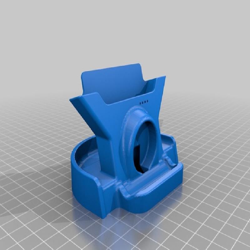This has a modified enlarged aperture for the phone, to accommodate an iPhone SE with thin case, plus a slightly elevated phone charger plug platform, so that the plug fits snugly in the phone.