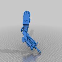 I wanted to print the model with as few pieces as possible because it was a rush job for Christmas presents for my kids. So this thing contains only five pieces (base/legs, torso/head, right arm, left arm, Ganymede). The original right leg was a mess so I mirrored the left leg and placed it in same pose as the source. I added keys and sockets to the parts to make placement and gluing easier (I'm a noob at this so they're barely useful). I thickened up Ganymede's scrawny legs so they would slice and print on my printer. Also thickened the wings and re-positioned them so they would print without much support. Bastion's left thumb was missing the final joint so I copied it from another Bastion thing somewhere (I think it's the source of the remix that I'm remixing) and attached it a'la Frankenstein's monster. Thickened up the shoulder pads which were hardly touching. Thickened up various "bones" so there were fewer gaps which would need support and fewer places to break. Thickened various gun plates so it would print and hold together better. Merged the legs into the stand. Did all this in Zbrush and decimated to give a reasonable quality water tight mesh.