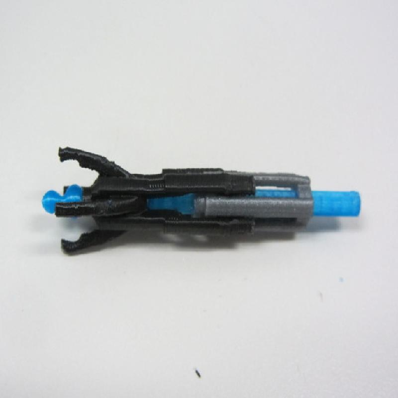 The blue tip and black barrel have extensive support material that needs to be very carefully cut away. After cleaning them up you can glue the tip into the end of the black barrel piece.