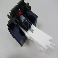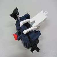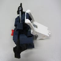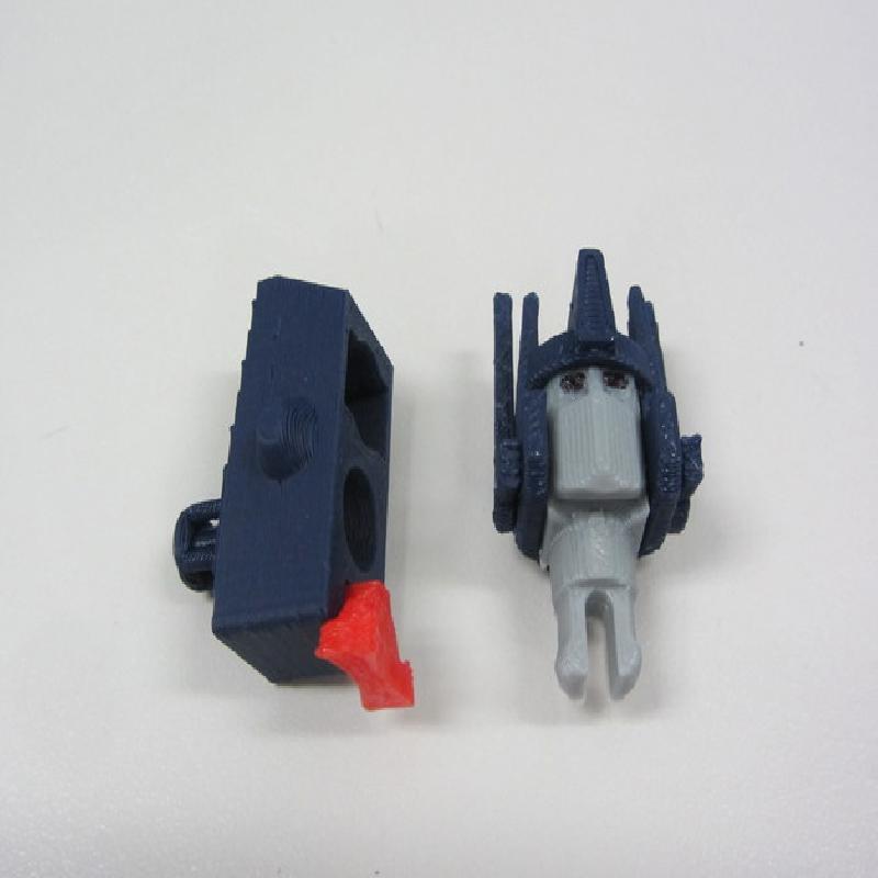 You can now insert the head into the head pivot. Note that it only turns about 45 degrees to either side. Make sure the torso transformation mechanism moves freely through its full range of travel at this point.