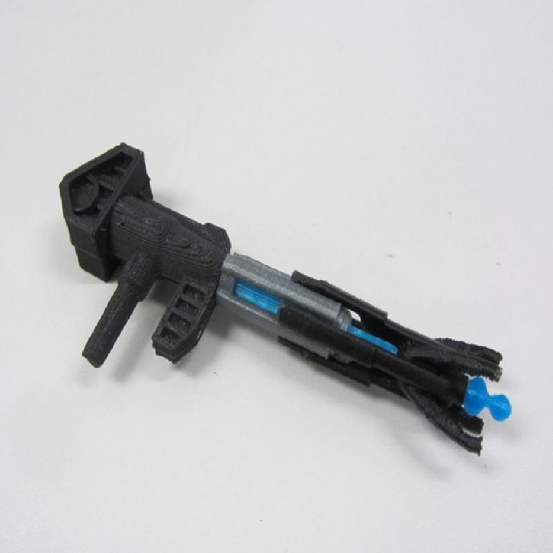 The gun is a trickier piece to build than the rest of the model, as it has a lot of fine details and thin vertical pieces. You will want to make sure your printer is very good at printing finely detailed parts for this. You will also need to glue all these parts together, as nothing on the gun snaps together.