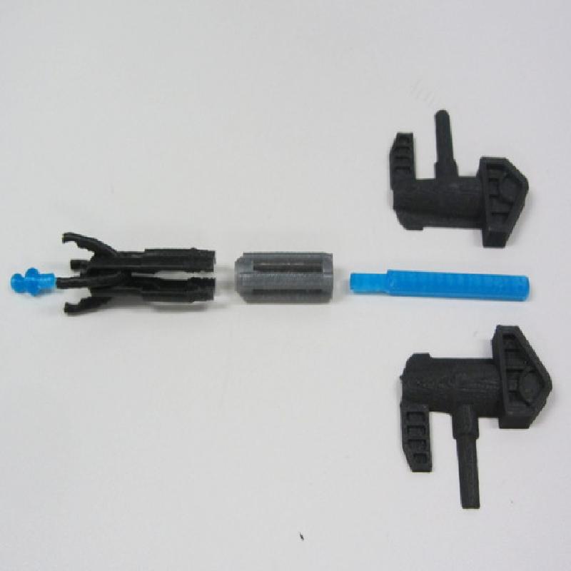 Choose either the fists with holes or without depending on whether you want your transformer to be able to hold a gun. I usually print the right fist with a hole and the left fist without, but both versions are provided for both side. You should in theory be able to put any 5mm socket compatible gun or other accessory in these holes as well.
