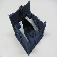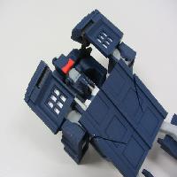 Press the other end of each upper leg piece into the holes on the hips. You should be able to fold the feet, legs and hips together into a compact base of the Tardis as shown. This is a good point to check to make sure nothing is interfering.