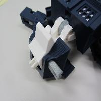 Optionally, cut eight pieces of white construction paper, 0.9" X 0.5", and slip them into the slots behind the window bars on the torso block and shoulder blocks. I have also provided the 'windowinsert' part which you can print and insert instead of strips of paper. This is useful if you want to make the window inserts some color other than white. You will need eight of them.