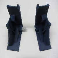 Press the shoulder blocks and shoulder caps onto the black snap tabs on the black back bar pieces.