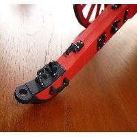 3 mm x 190mm shaft from brass for the axle. You can flatten the ends with a hammer. Then drill a 1,5 mm hole.