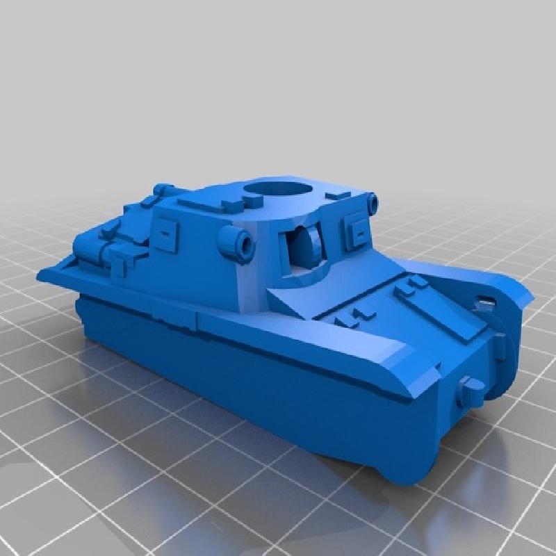 I up-scaled it to 28mm (1/56th) scale. I separated the tracks, adding the tread lug pattern, and created new main gun (as a separate file) and new turret MGs. I also created a "pivot" for the turret mount, as I find this stronger in 3d printing then turrets with the pivot as one part.