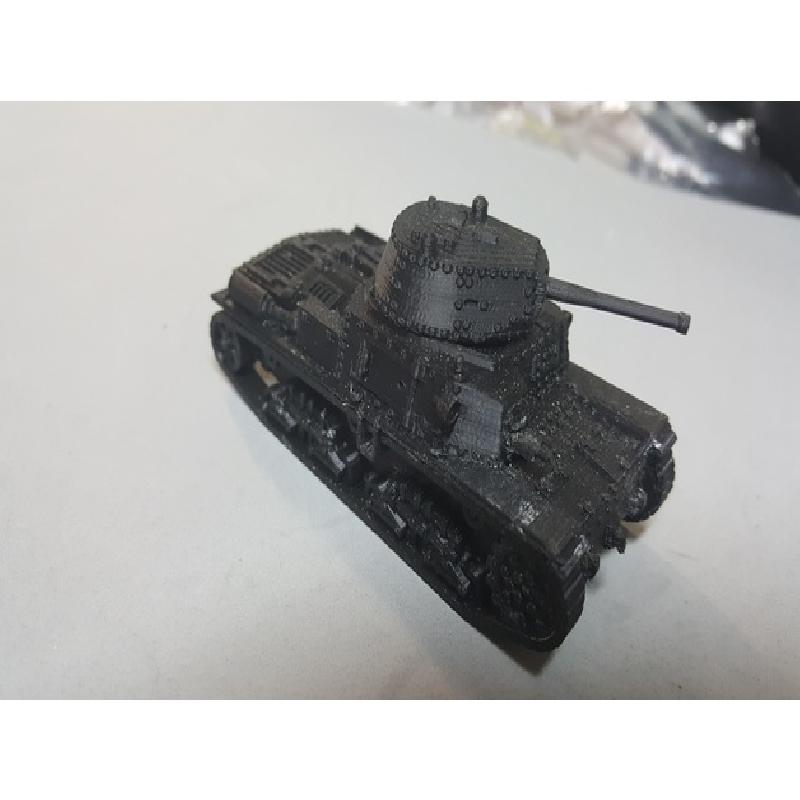 I up-scaled the original to 1/56 - 28mm scale, sliced off the tracks into separate files, removed the full MGs and created a file for them and created a separate turret pivot to ease the turret printing.