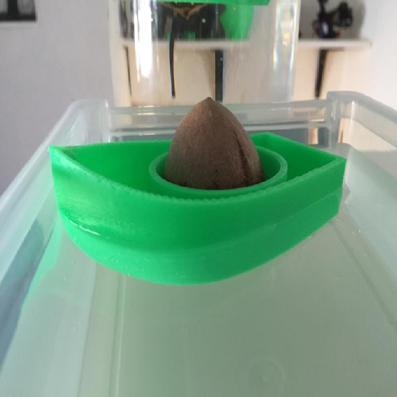 Fits an avocado pit/seed up to +/- 40mm (still leaving some space for the seed to split open). If you have a bigger seed, just scale the model up, or ask me!