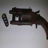 This is a Fallout 4 Pipe Pistol. Modeled from found metal parts. It has a working trigger and hammer. The Cylinder spins and the flash hider is threaded on.