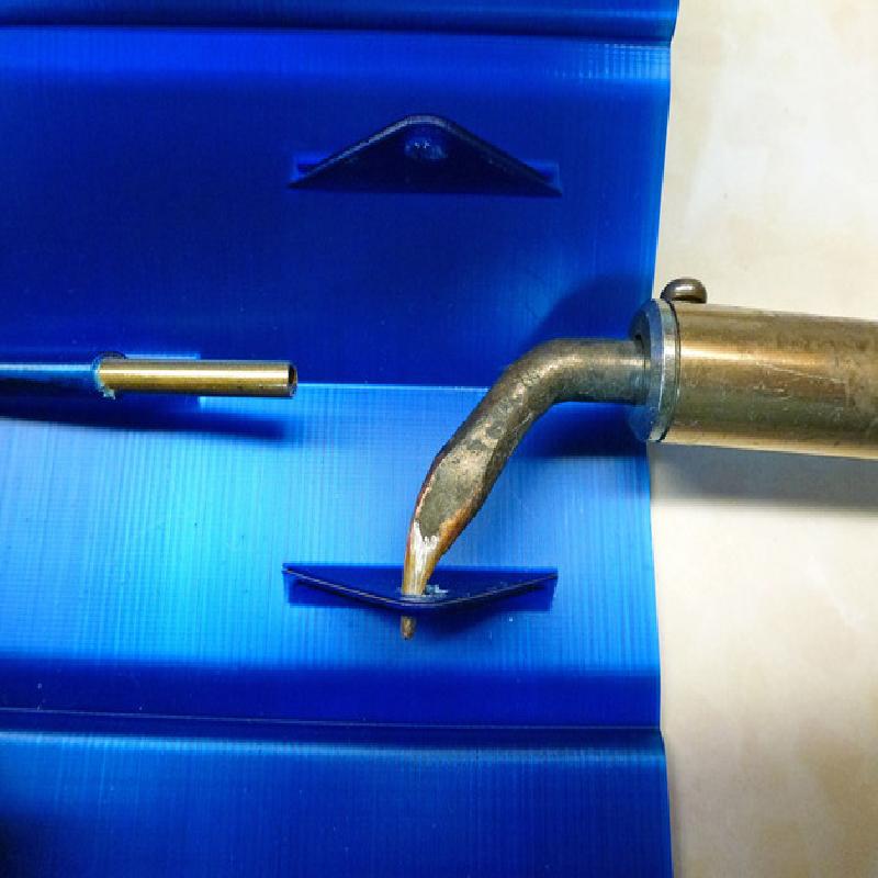 The holes in the support to fasten the motor mount must be melted out by a slightly modified bowed soldering bolt ( as shown in the photograph)