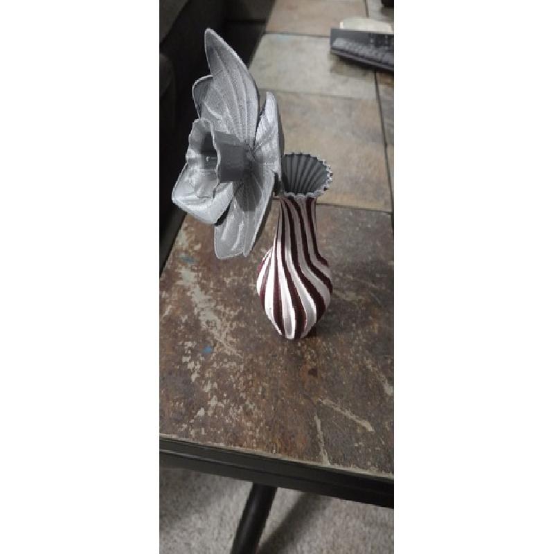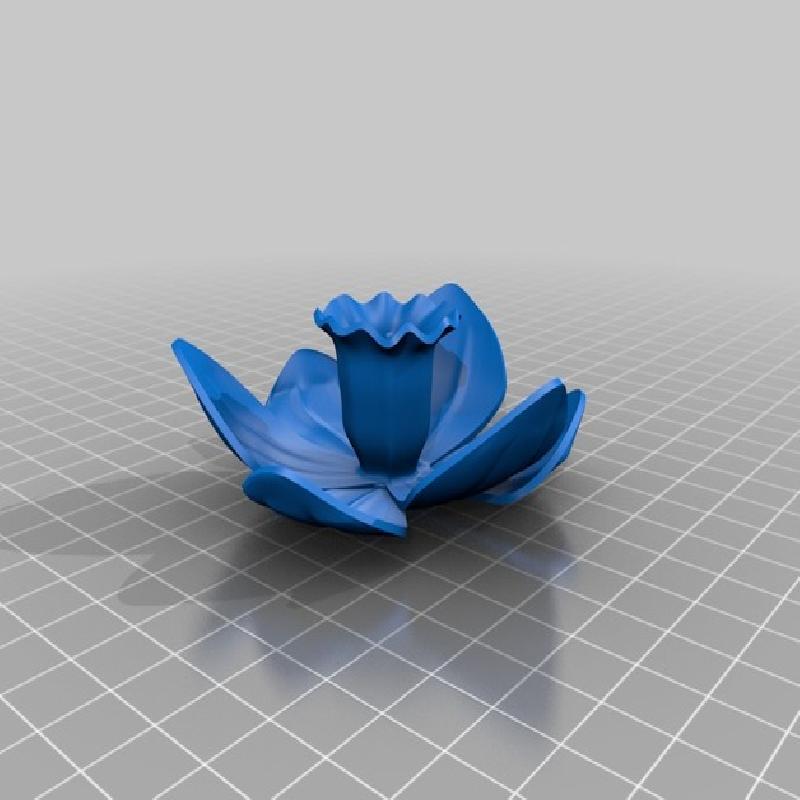 Print with supports. Will need a touch of sanding. Stem and vase included, print vase at larger size if printing flower as-is.
