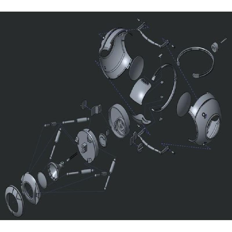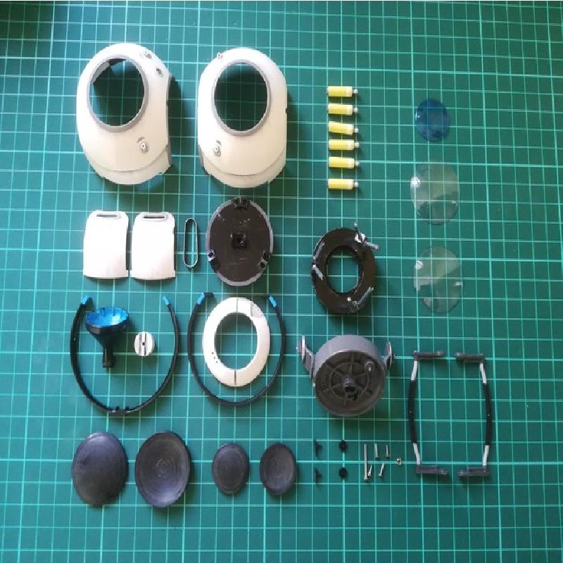 The parts named "noyau_lentille", "empreinte_lentille", "noyau_hublot" and "empreinte_hublot" are for thermoforming of the eye lense and the to windows on the sides