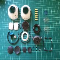 Les pièces nommées "noyau_lentille", "empreinte_lentille", "noyau_hublot" et "empreinte_hublot" servent au thermoformage de la lentille de l'oeil et des fenêtres sur les cotés