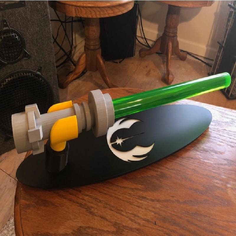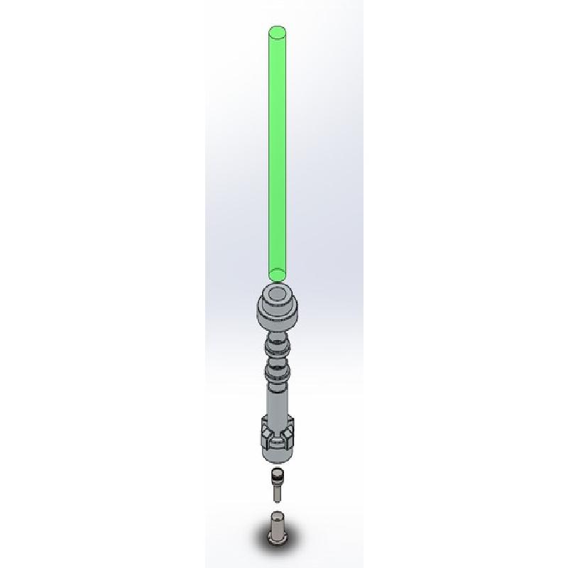 Lego Light Saber with Lego hand for mounting. Overall size 23" long, requires 19.5" of 1.5" acrylic rod.