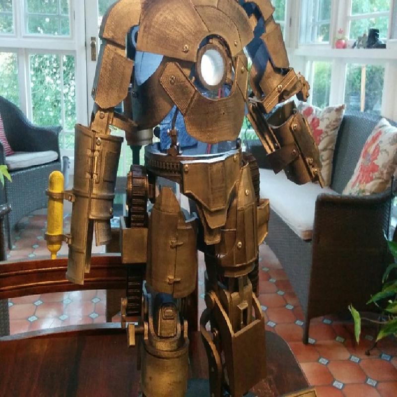 这件模型有96个独立打印的部件,我花了3个月去设计图纸并打印了2套。我在中国科技馆工作,我们有3D打印的展示,不过比较简单,我希望能做出一些复杂的设计,于是有了这个钢铁侠,看见过他的人都非常喜欢它,我也把他放在了我的办公室里。感谢钢铁侠的创作者们,我是钢铁侠的FANs。我没法在室内使用丙酮,所以我用眼镜螺丝,和热水解决了组装问题。