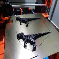 A flexible velociraptor! How cool! This is a very flexible (19 joints!), print-in-place model I spent a long time designing. A lot of attention to detail in this model, and a few of the smaller tail links are weak due to their size so be careful! He can stand on his own or hang from something; he can even bite his own tail! One of the links just behind his hip will be a little stiff after the print and will just take a little careful working to get completely flexible, otherwise (fixed) He should print and pop off the board in a completely flexible state. He seems happiest when hanging from a computer monitor. Have fun! Kudos to DrLex, Kirbs and airfish for developing the link mechanic used in this model