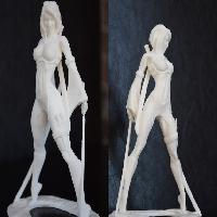 Akiko is a Poser character model adapted to a solid figurine and made printable without added support on an FDM printer, such as the MBI Replicator.