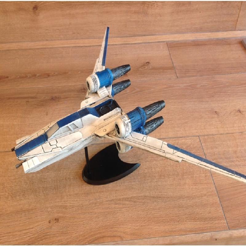 This is a remix of aaskedall's nice U wing model. I have removed the fixed wings and canopy and made my own. The canopy can now be printed in clear PLA and the wings can swing back. I can't remember if you see them swept back in the movie or not but they are in the concept art.