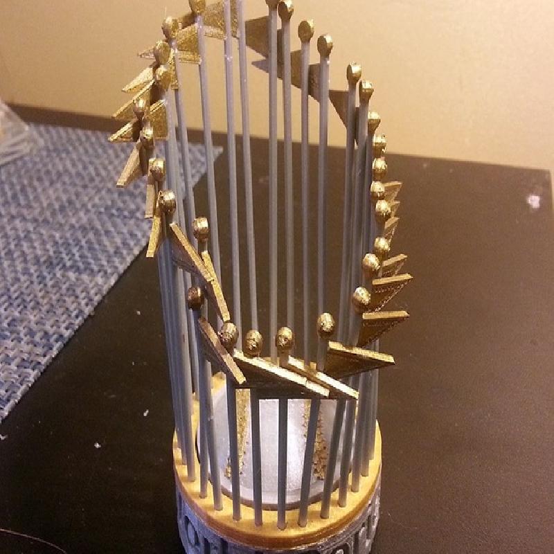 I printed the base and flags in silver and the ring that hold the flags in gold plastic. I painted the seams on the baseball and flags gold.
