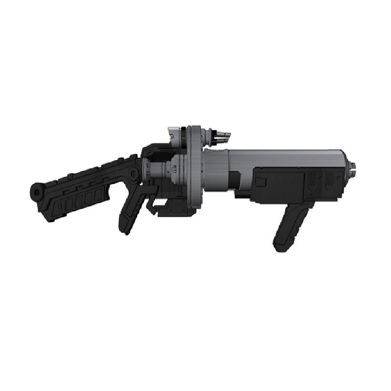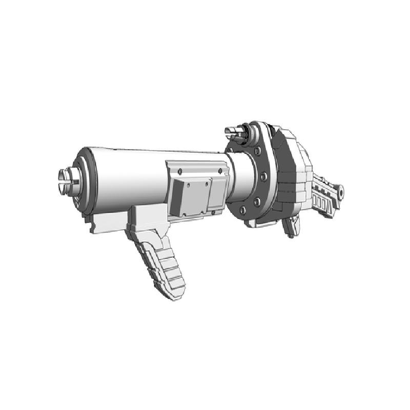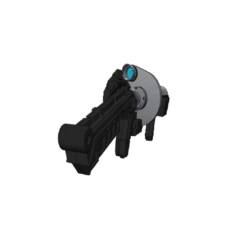 There wasn't a lot of reference for the left side, I tried my best to be accurate. There are voids to add lighting and sound and the two cables that are on the right side of the rifle.