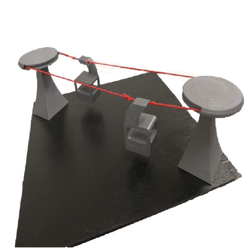 Run a string through the holes of the poles and cabins - tie knots as in picture to avoid that the cabins slide independently.