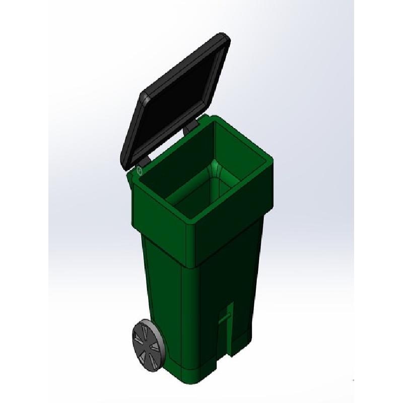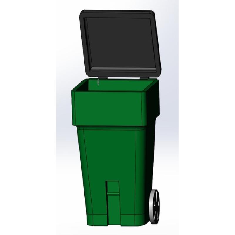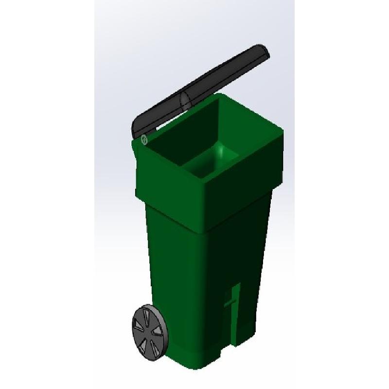 This is a trash can I made. The lid joint can be directly printed, and is designed to pop into the divots in the main bin. The axle should be printed in two parts (part1 and part2) and glued together after being fit into the hole in the bin.