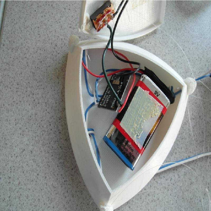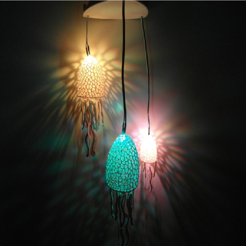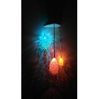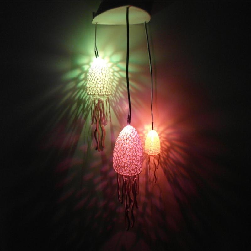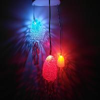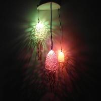 This is a cool DIY lamp project. If you want to enlight it, you need a switch(as in the pictures), cables, LEDs, resistors and a 9V battery. The LED's are put through the holes at the bottom of the top part and connected via the switch with the battery. I took here a Voltage converter to control the LED's, and I used colour change LED's You need every part and to assmble it like in the picture. The Top and bottom of the top part wil side perfectly over each other(maybe you have to sand it a little bit.). The jellyfishes are mounted with the cables which support the leds with voltage to the top part.