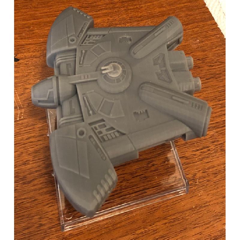 For the X-wing miniatures game this model should ideally be printed at about 450%, but I could only fit it on my Anycubic Photon at 425%. At 425% the model comes out about the same size as the Millennium Falcon YT-1300 model.
